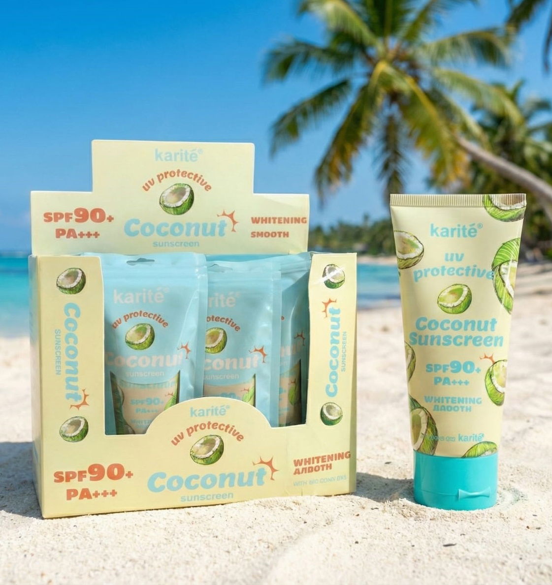 - Protector solar de muy alta protección que ayuda a resguardar la piel frente a los rayos UVA y UVB. Su fórmula con aroma a coco brinda una experiencia agradable durante la aplicación, dejando la piel protegida e hidratada.