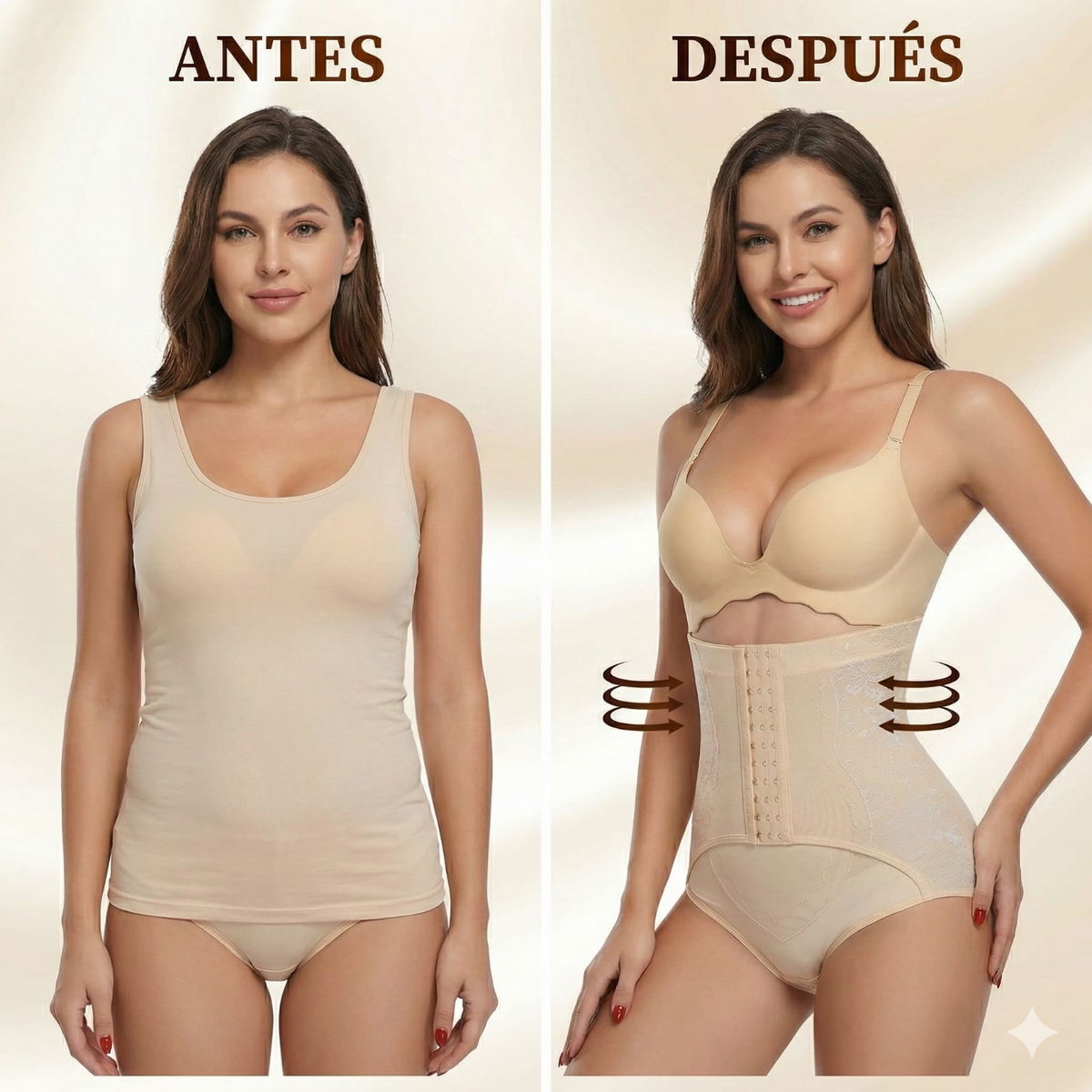 - Conjunto moldeador diseñado para estilizar la silueta, brindar soporte y realzar las curvas de forma cómoda y discreta. Ideal para usar debajo de cualquier prenda, ayudando a lograr un acabado más uniforme y definido.