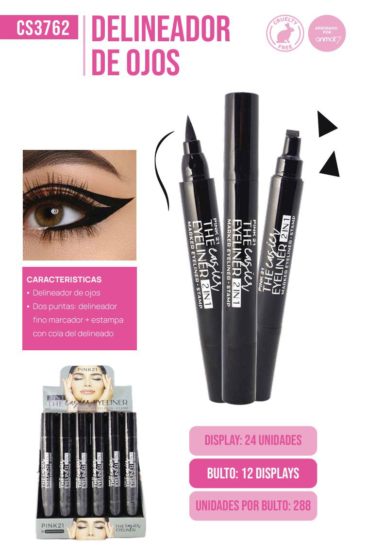 - Delineador líquido 2 en 1 que combina punta de fibra para trazos precisos y sello con forma de cola para facilitar el delineado estilo cat eye. Ideal para lograr un look definido y simétrico de manera práctica y rápida.