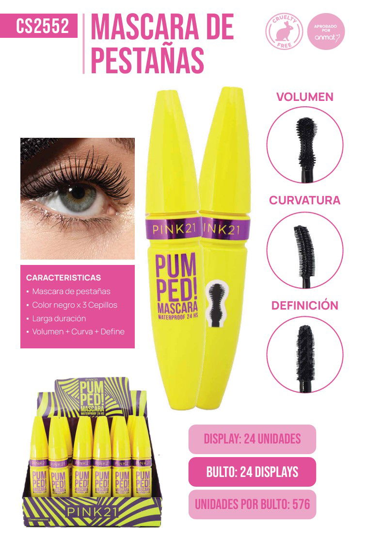 - Máscara de pestañas WATERPROOF 24HS, diseñada para aportar volumen y definición, logrando una mirada más intensa y expresiva. Su fórmula permite cubrir las pestañas desde la raíz hasta las puntas, realzando su apariencia con un acabado uniforme.