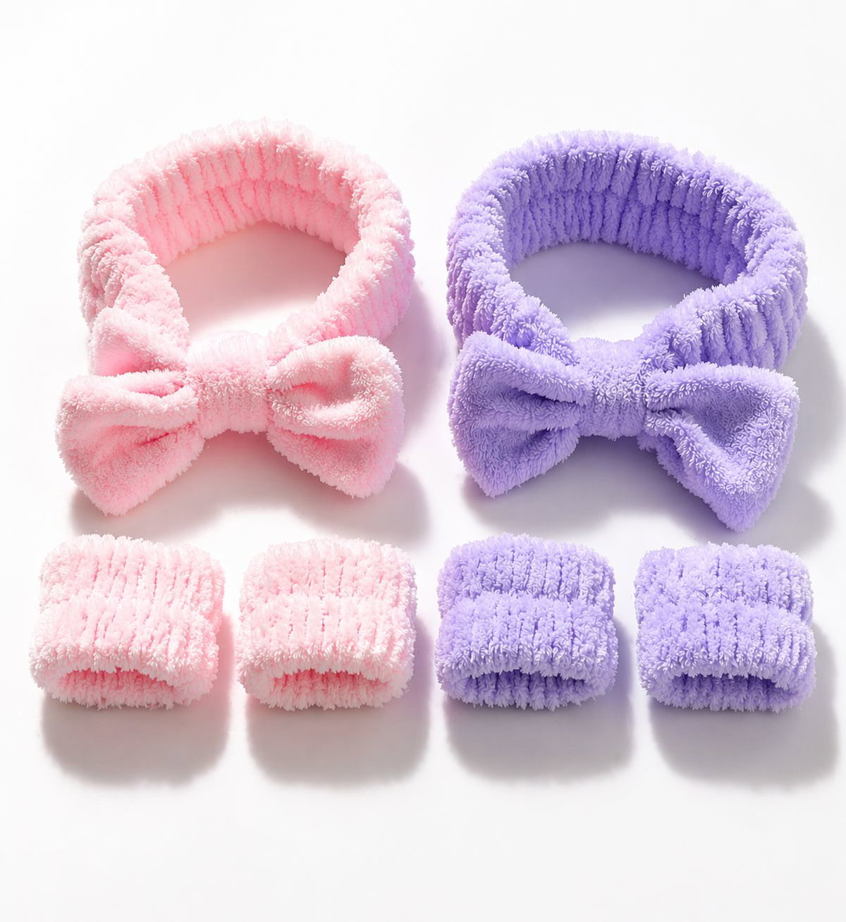 - Set de accesorios ideales para tu rutina de skincare o maquillaje. Incluye vincha con diseño de moño para sujetar el cabello y muñequeras absorbentes que evitan que el agua escurra por los brazos.