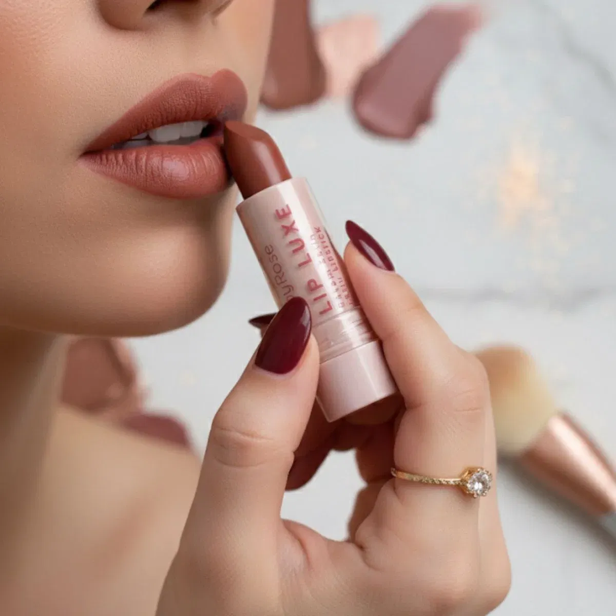 - Labial con acabado satinado diseñado para aportar color y suavidad a los labios. Su fórmula permite una aplicación cómoda y uniforme, dejando un acabado elegante con un ligero brillo que realza el maquillaje.